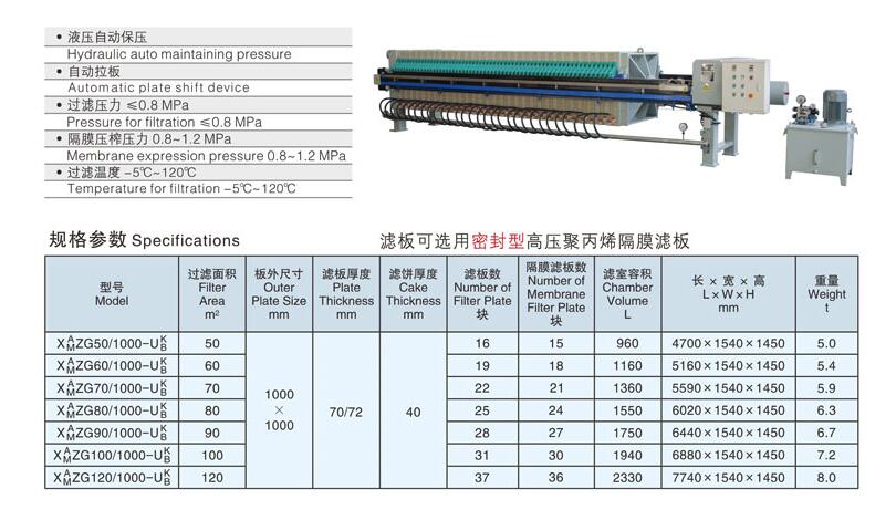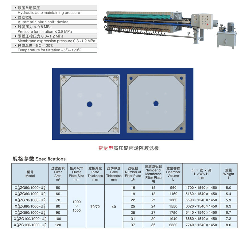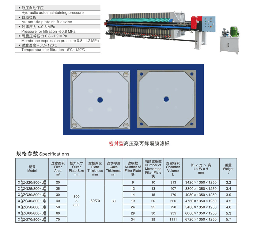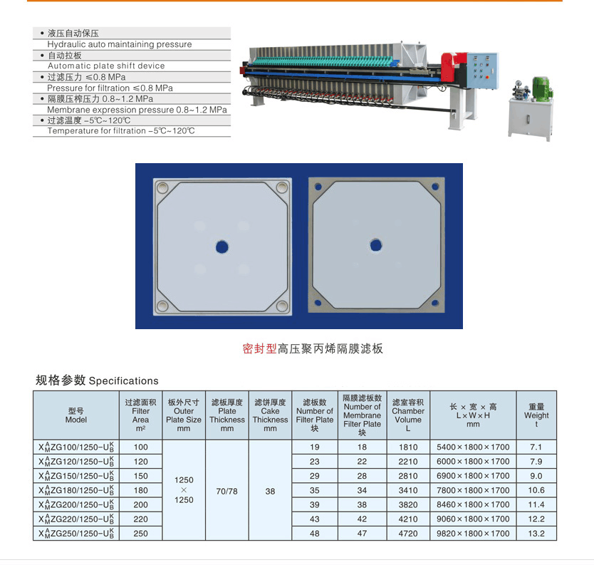 1、采用聚丙烯隔膜技術(shù),壽命長,穩(wěn)定性好,通用性好,適用于多種行業(yè)。采用水壓或氣壓壓榨,壓力可達(dá)到0.8-2.0mpa。